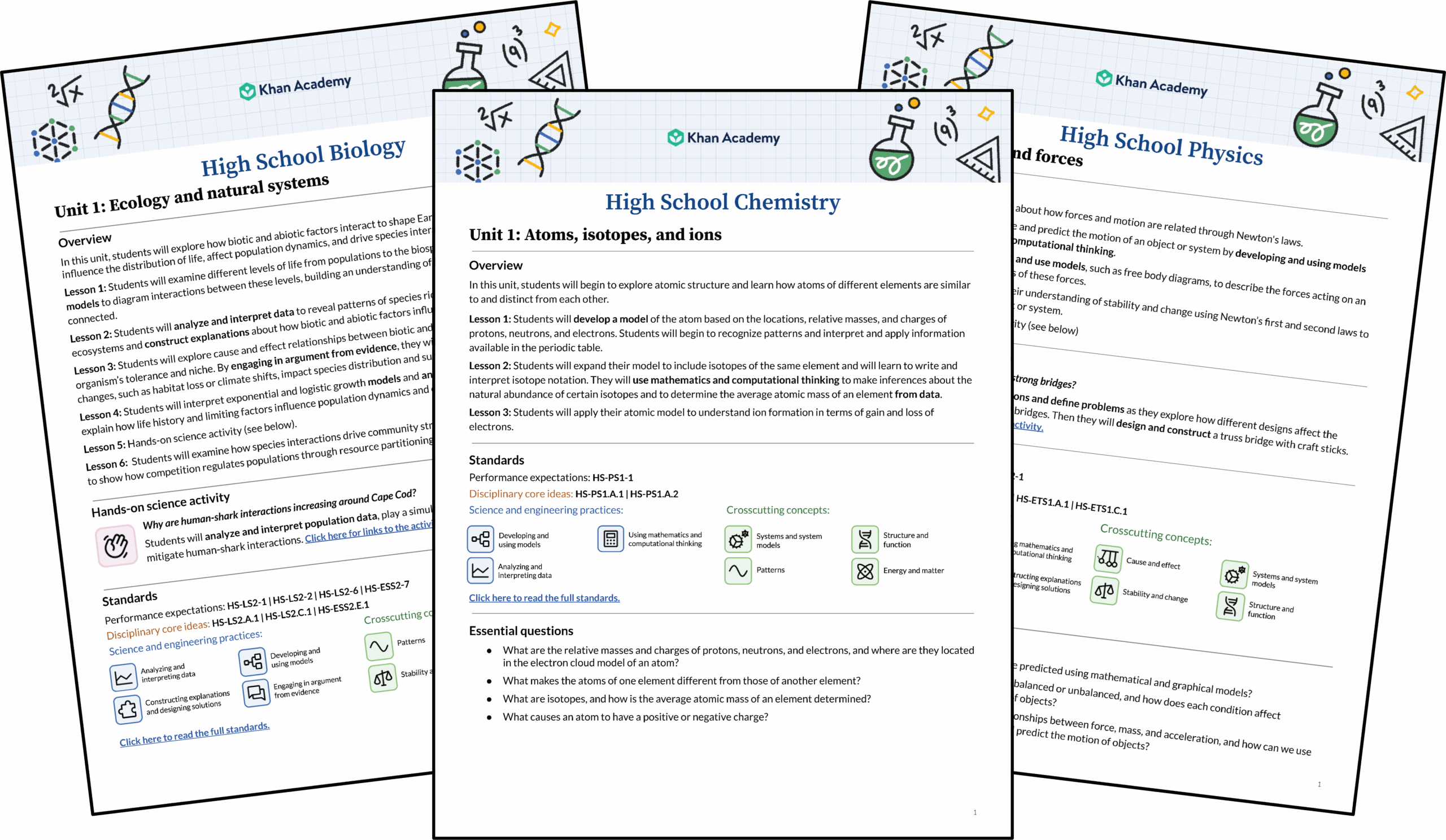 We know how busy science teachers are. That’s why we’ve created unit guides and planning tools to help you bring Khan Academy into your classroom with ease. Our goal is to help teachers save time while delivering meaningful, standards-based instruction. Every high school unit guide includes:
