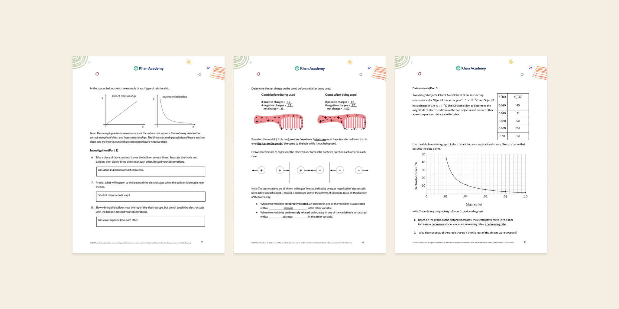 Khan Academy’s downloadable science activities are carefully researched and developed by our team of former teachers, science researchers, and experts in science education. We’ve done the work and put in the time to create chemistry and physics activities that meet national standards and fit easily into your lesson plans. We’ve brainstormed experiments that illustrate important concepts and phenomena while also engaging students—activities like “How do engineers design roller coasters?” and “How do we know when dinosaurs lived on Earth?We’ve chosen materials that are inexpensive and easily accessible. We’ve worked through the logistics of each experiment and, most importantly, we’ve tested our work in classrooms to ensure our downloadable science activities are both fun and informative.